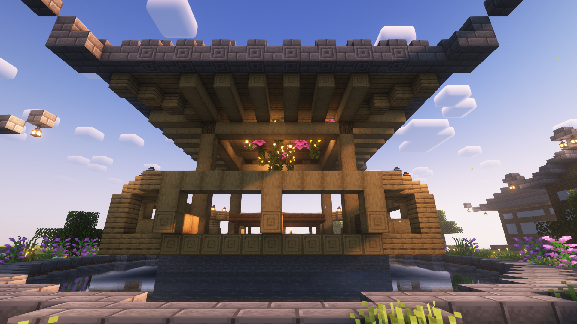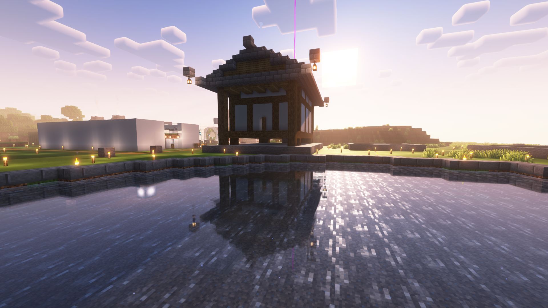 부랴 부랴 입구 꾸미고 집 다 쌓아 올리고 연못을 만드니