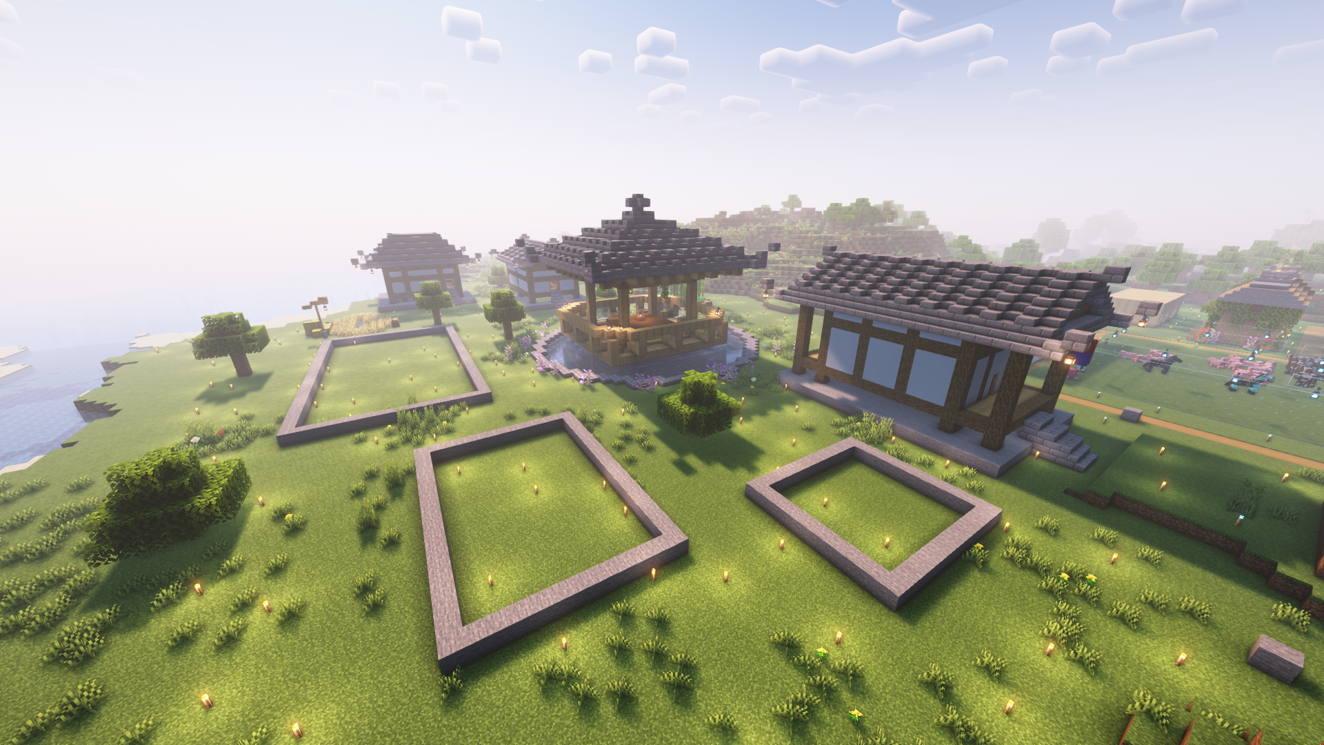 마크(마인크래프트) 야생 생존기 - 주민 마을 완성~! 한옥 마을 만들기 끝!! ><